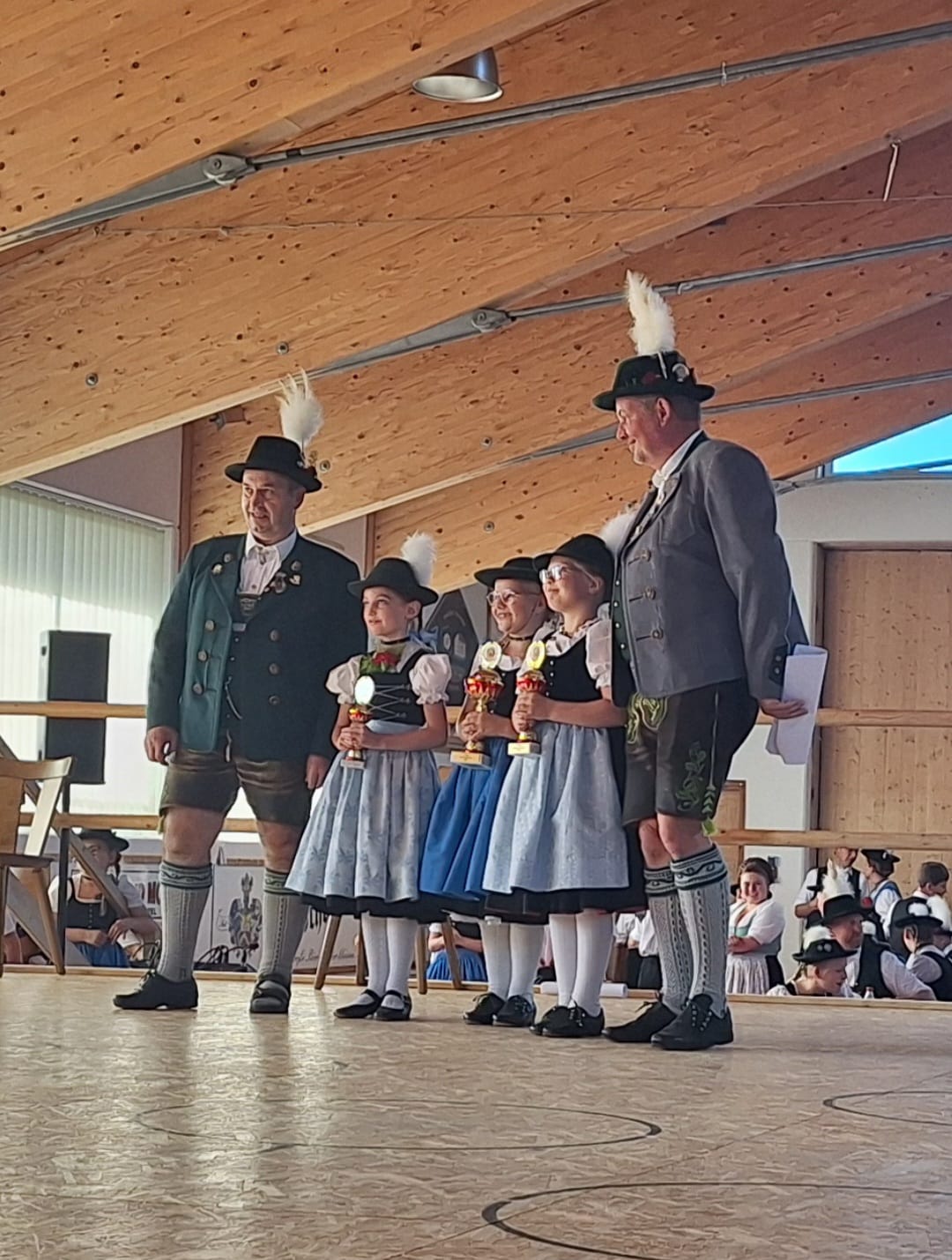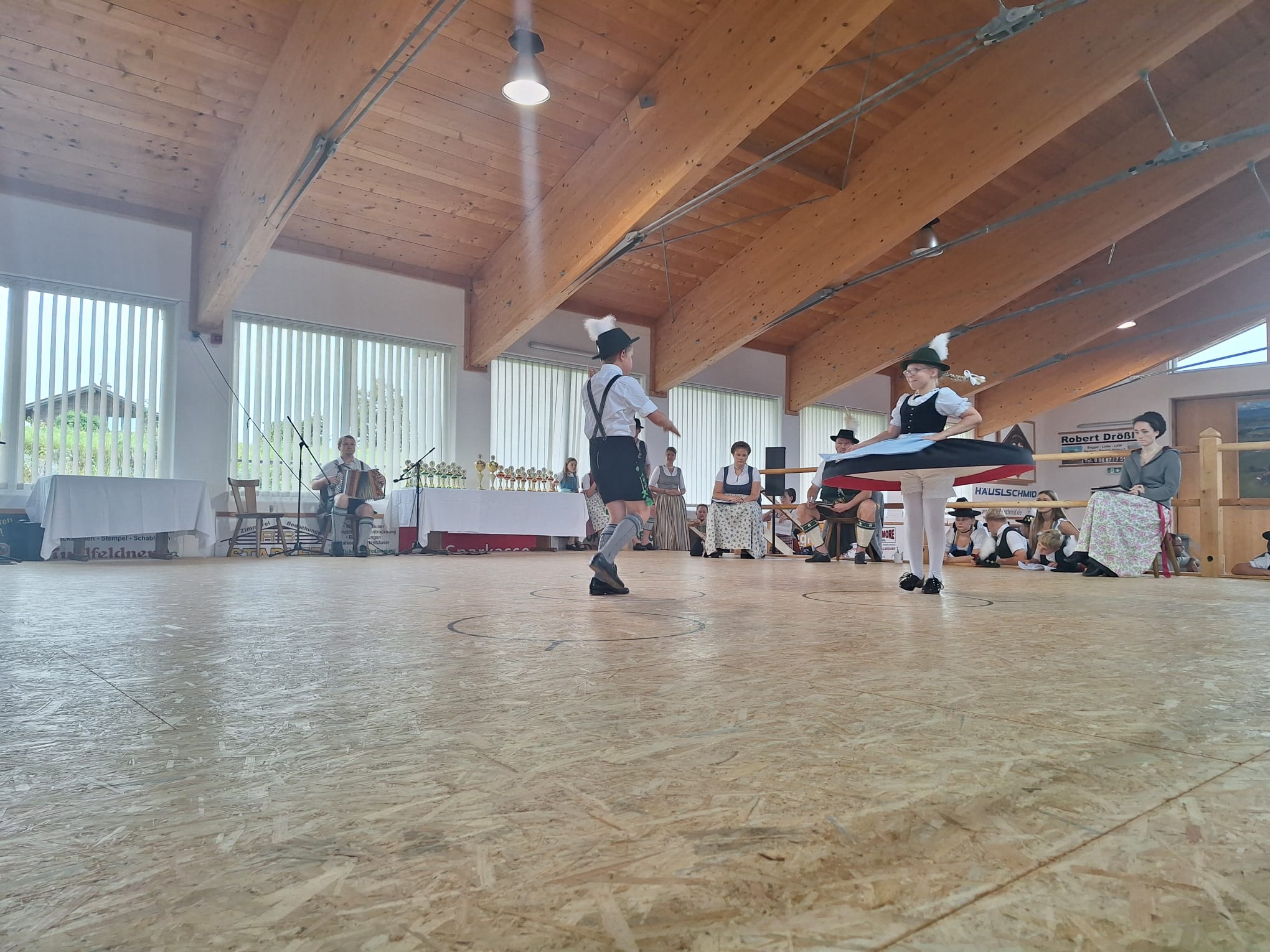Im Anschluss lud der Verein zu einem Frühschoppen mit Ehrungen in die Trachtenhütte ein. Geehrt wurden: Für 25 Jahre Vereinszugehörigkeit Alexander Fellner, für 40 Jahre Regina Galler, Raymund Edfelder und Rosa Langwallner, für 50 Jahre Martin Langwallner und Marianne Schöfecker und für 60 Jahre aktive Vereinszugehörigkeit Peter Kern. Zwischen den Ehrungen traten die Kindergruppen auf, für musikalische Unterhaltung sorgten die "Gvierigen".